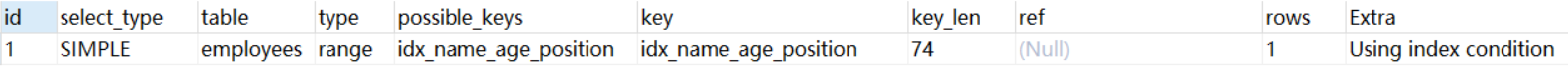 EXPLAIN SELECT name,age FROM employees WHERE name= 'LiLei' AND age = 23 AND position ='manager';